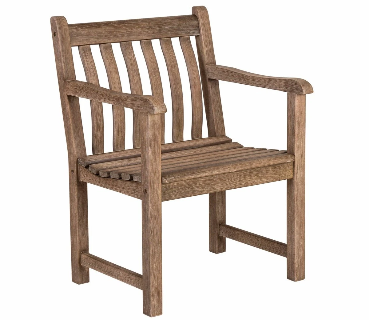 Used individually or as part of a distinguished dining set, the Broadfield Chestnut Acacia Armchair is a traditionally presented piece of outdoor furniture whose robust frame emphasizes comfort.