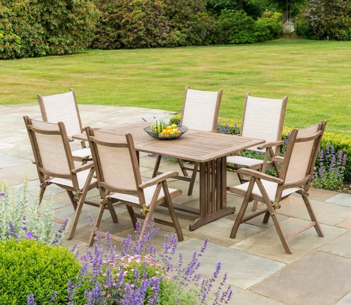 This responsibly sourced timber has a lovely brushed finish, its tough hardwearing characteristics exactly suited to outside use where it will appear particularly appealing when accompanied by a set of chairs from the same range.