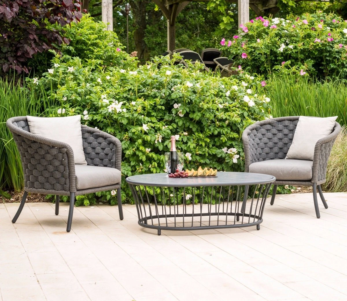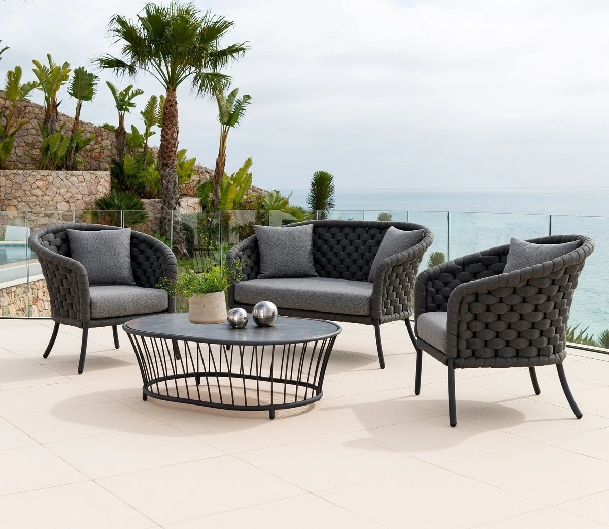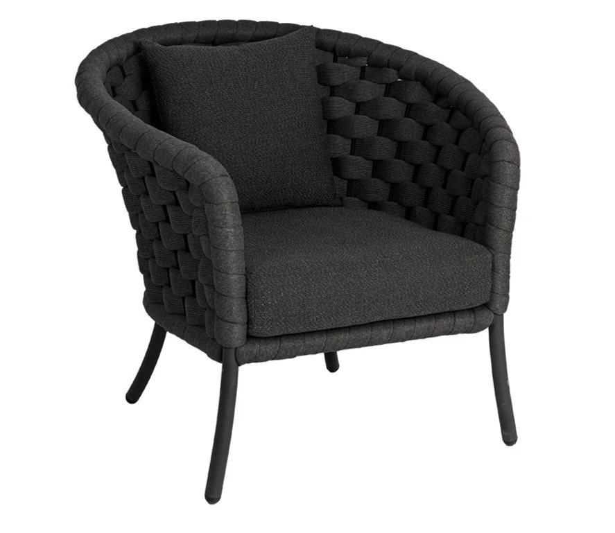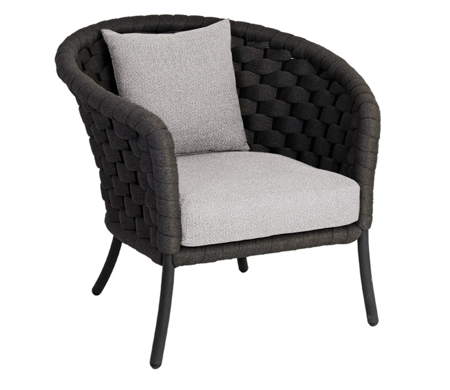 The metal tubular frame is corrosion resistant and gives the furniture its curvaceous appeal augmented by an attractive wide rope weave. Grey enhances the chair’s graceful character and it will look fabulous when matched with other pieces from the same collection.