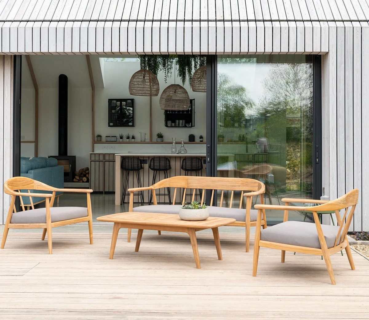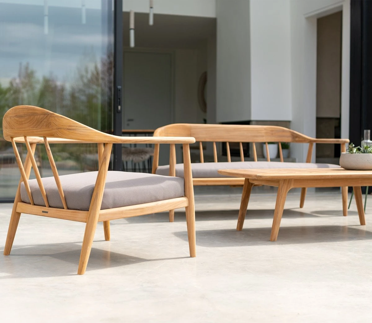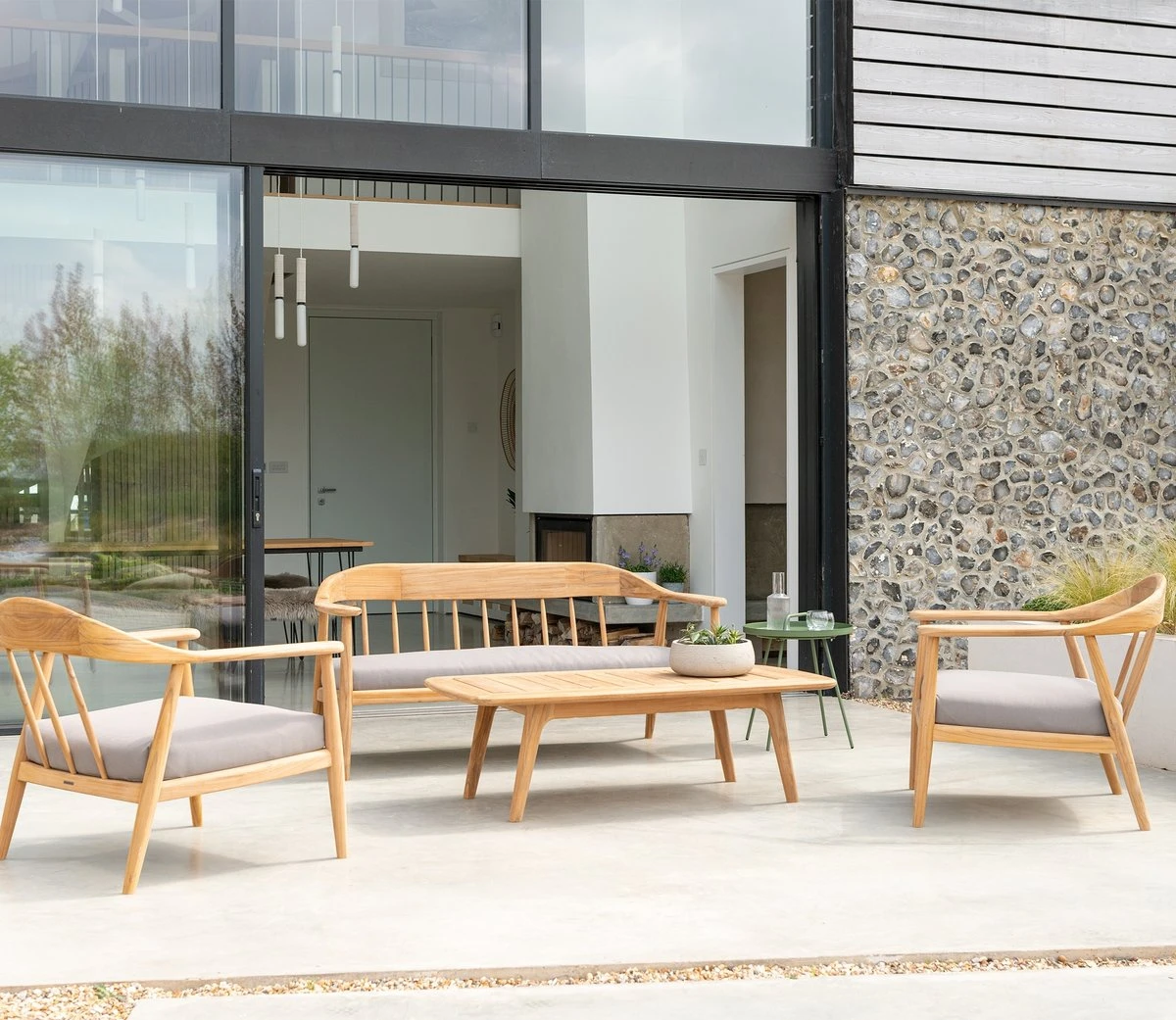 Sustainably sourced teak is used throughout, this matches other Dana range pieces and there is no better wood for outside use due to its long term durability and weather resistance gained from naturally occurring oils.