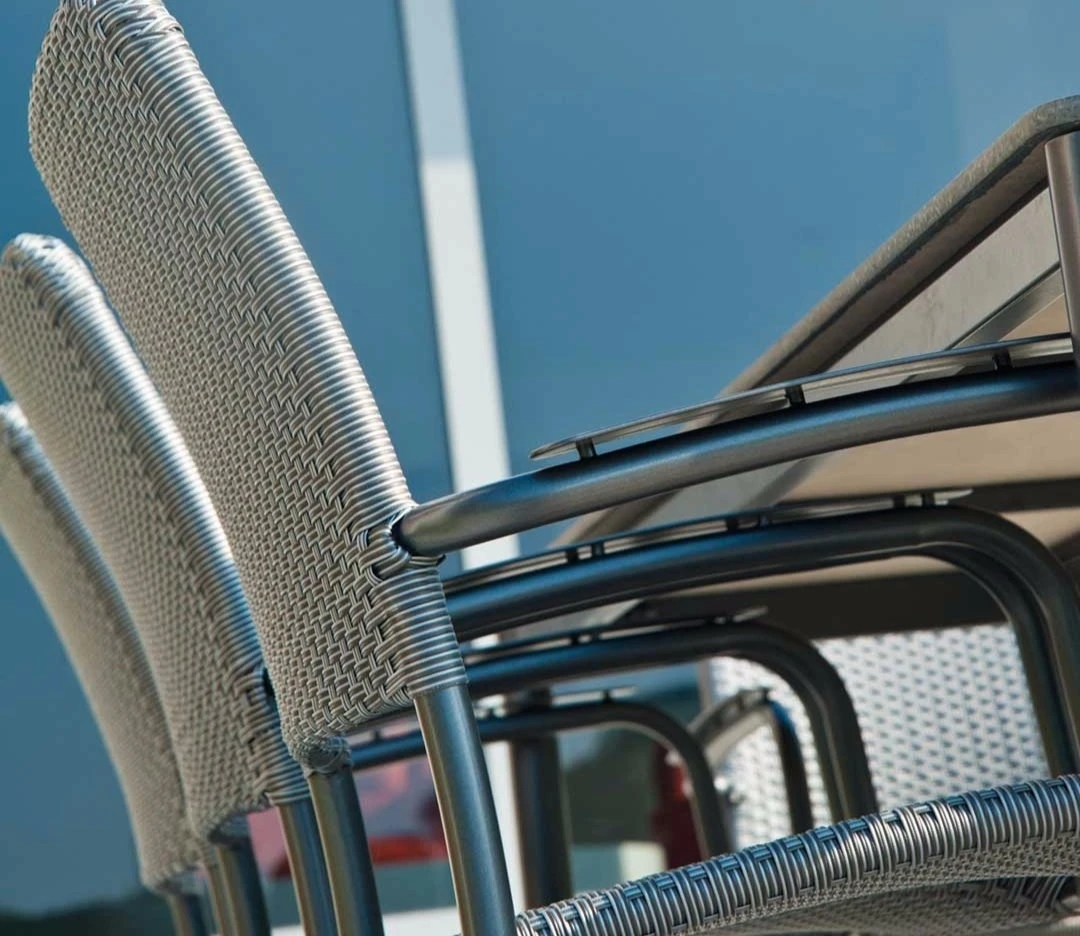 The Portofino Collection is a range of outdoor furniture by Alexander Rose that brings a contemporary influence to classic designs by the use of modern materials.