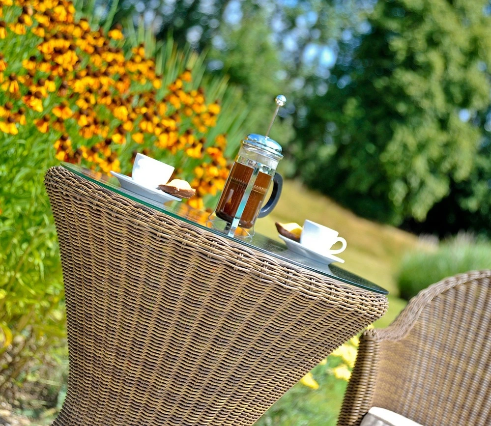 Similar to other outdoor furniture in the San Marino range, the Bistro Table has a fresh natural colour and perhaps a hint of Mediterranean style. Red pine rose fibres are used to weave over the aluminium frame and it is then edged with a rope trim.