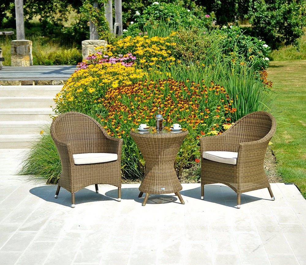 Environmentally friendly and recyclable, the synthetic rattan weave is strong, durable and weather resistant with a 10 year material warranty but with the expectation that it will last much longer.