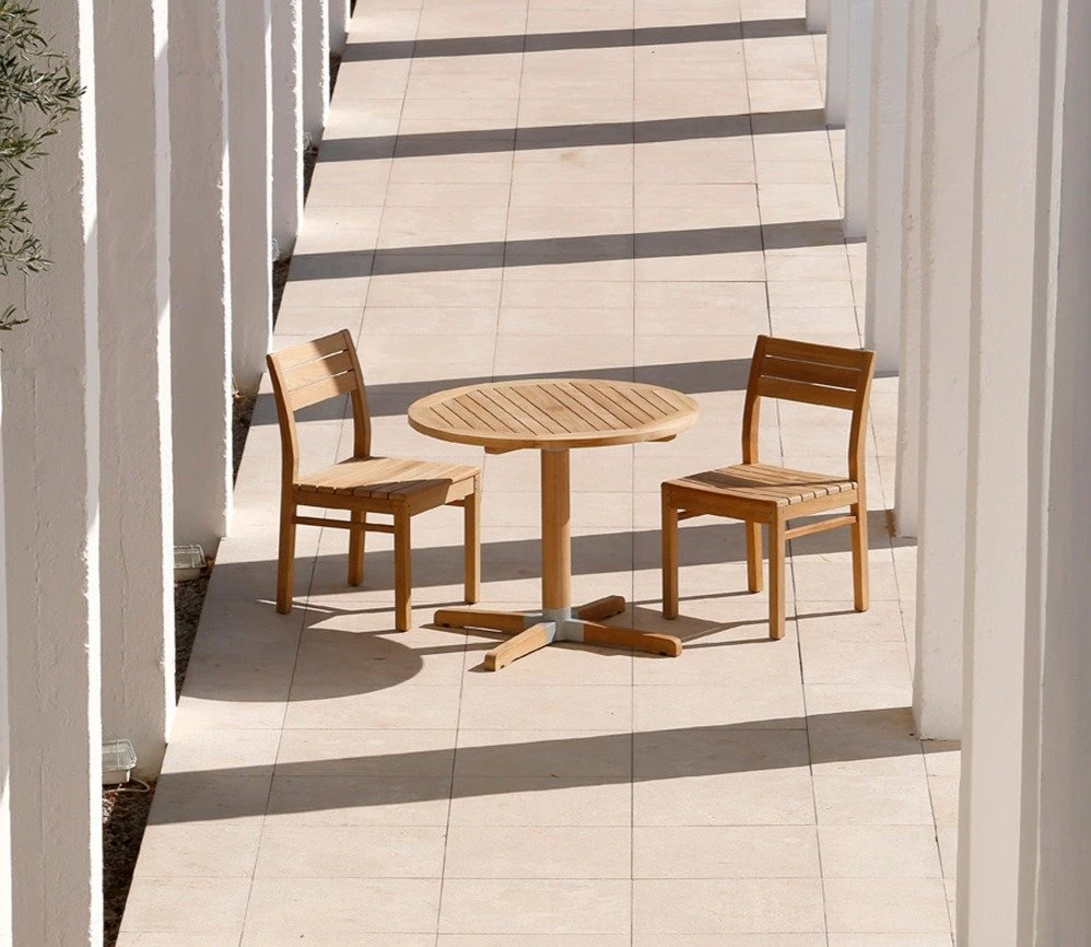 The Bermuda Dining Table from Barlow Tyrie is 90cm in diameter and capable of seating between 2 – 4 people.