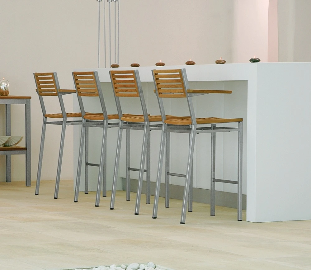 The Equinox High Dining Side Chair from Barlow Tyrie offers a comfortable place to sit at a breakfast bar or similar.