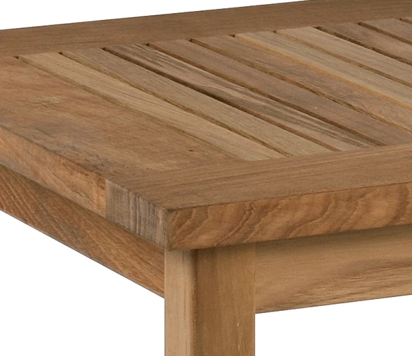 The Monaco Coffee Table is the perfect piece to complement other teak items and Monaco chairs. Its slatted top shows of the beautiful yellow-brown hardwood gracefully and provides a simple place to rest your objects.