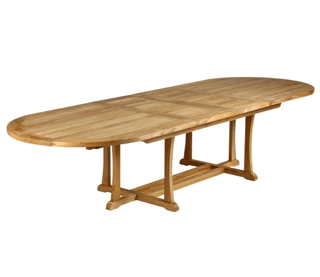 The table is made from teak hardwood which has lovely natural colour and contains its own occurring oils which adds a protective weatherproof layer and, to ensure a smooth and virtually maintenance free life, the locking and extending mechanism are made using solid brass fittings.