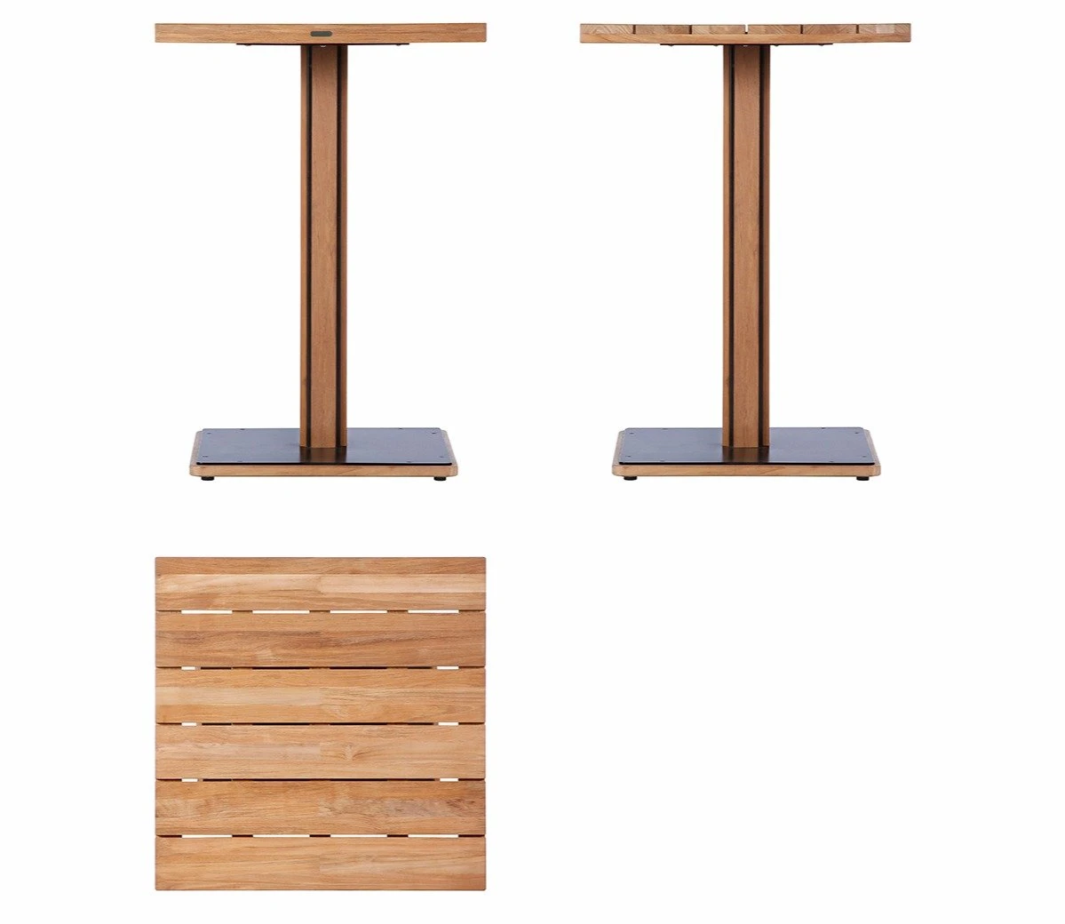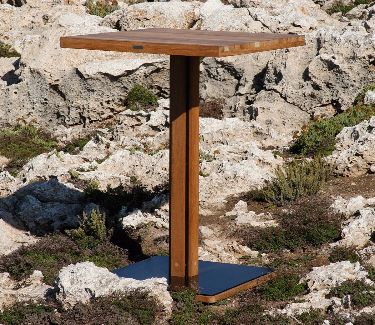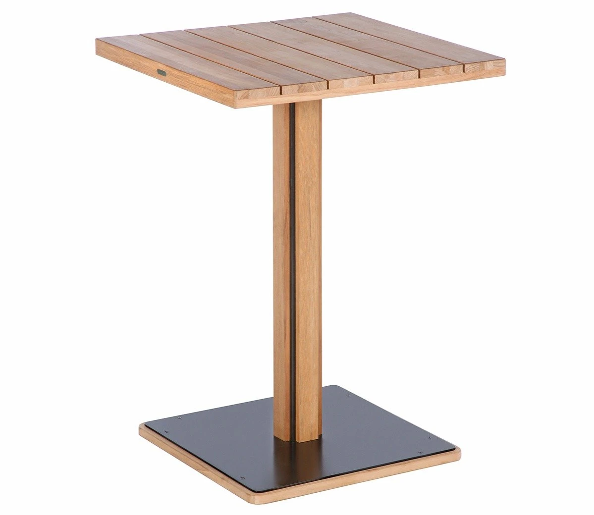 The sustainably sourced teak is extremely durable with a delightful colour and grain, and is set around an aluminium frame which has a protective black powder coating. To ensure stability, there is a substantial square steel base.