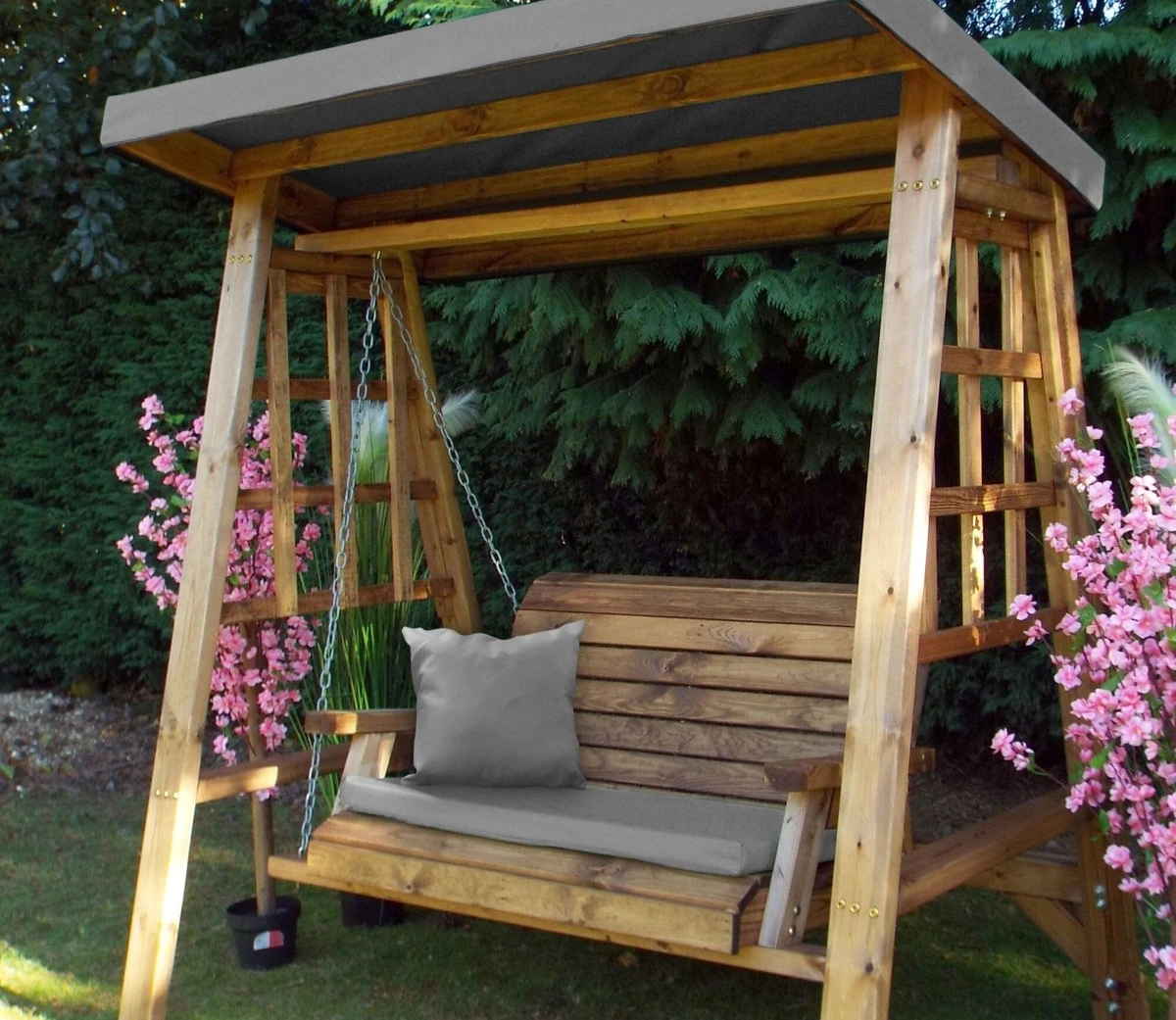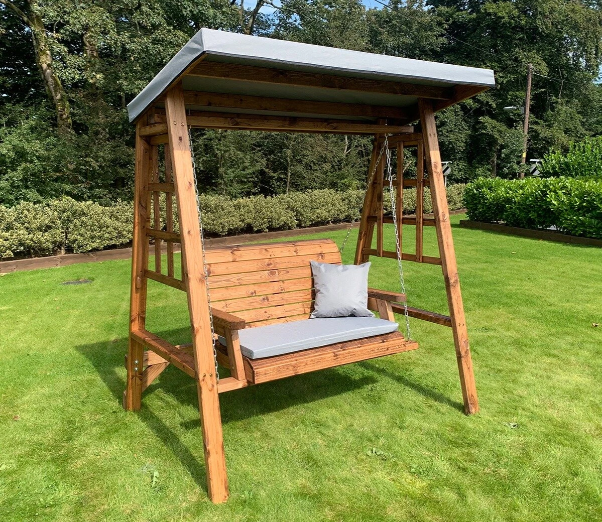 The Dorset Grey 2 Seater Swing Seat from Charles Taylor, hand crafted from lovely Scandinavian timber, is an ideal place to relax in the sunshine of your garden.
