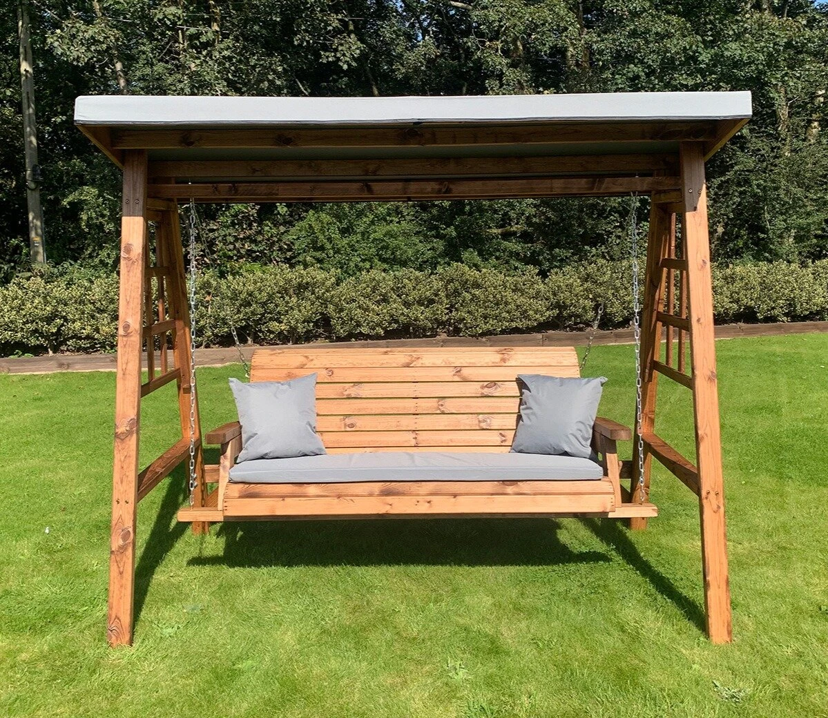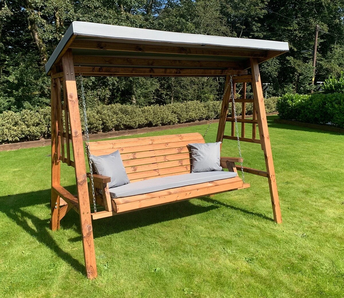The Charles Taylor Dorset Grey 3 Seater Swing Seat is impressively made from Scandinavian timber and features a detachable waterproof cover and cushioned seat.