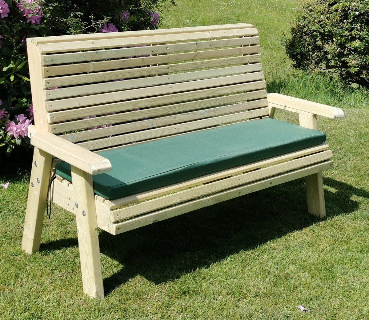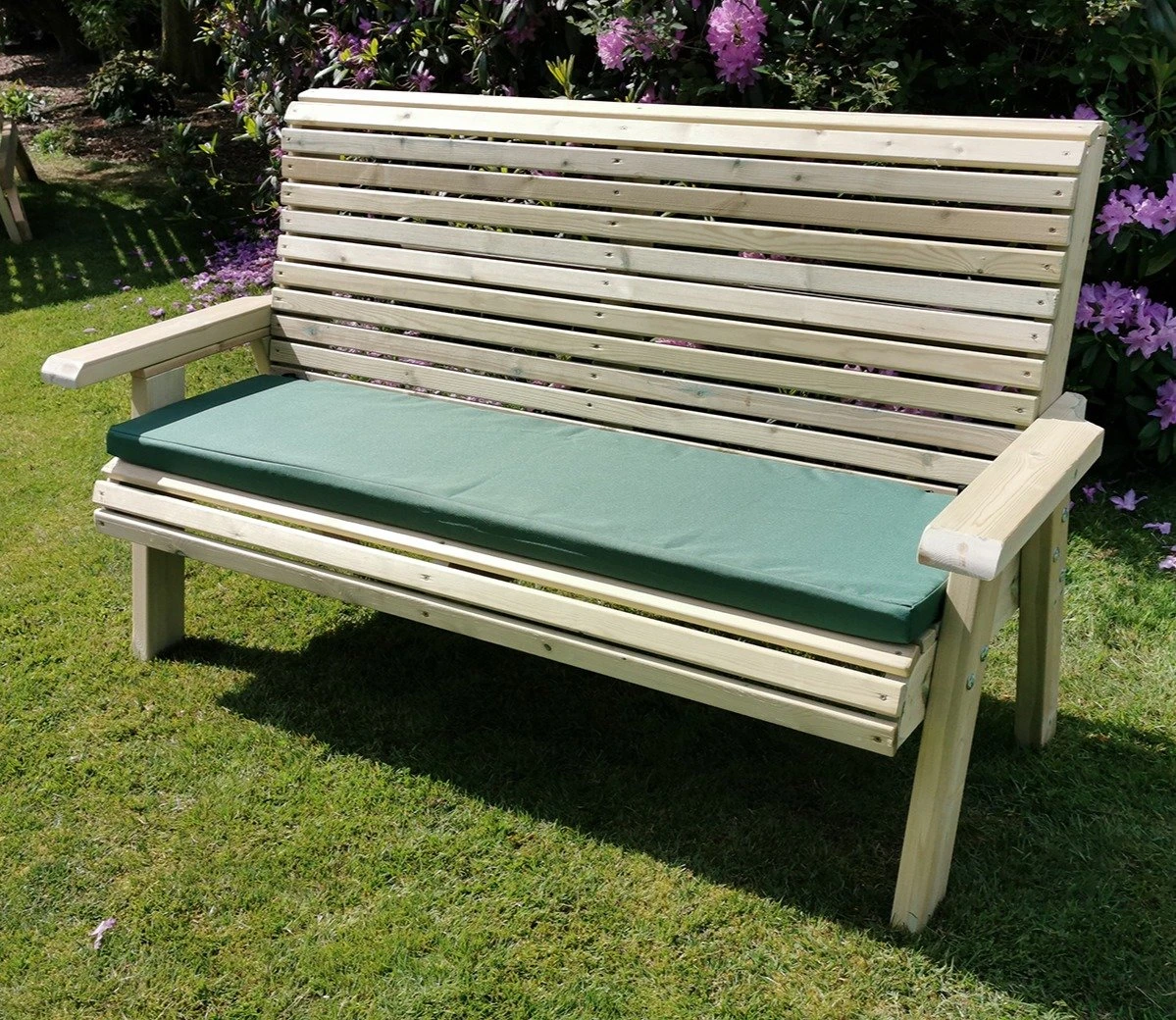No extra preservative or painting is required, and the bench will arrive fully assembled. The only decision you have to make is whether to add a triple cushion in one of a choice of colours – black, navy or green.