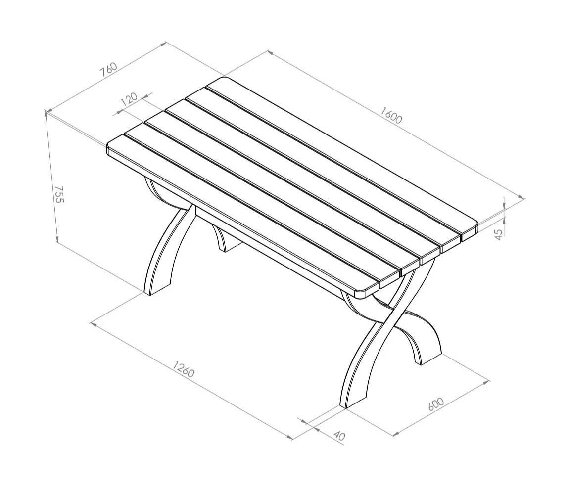 | Table Top Slat Size: | 120mm x 45mm |